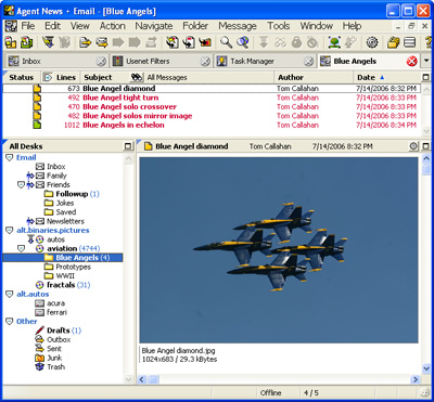 Organize your Folders Pane into hierarchies that fit your requirements. Nested folders mesh seamlessly with Agent’s desks. You can drag and drop folders where you want them, use auto-complete to find your target folder, move/copy/import/route messages to any folder in the hierarchy. Tabs for Open WindowsEach open window in Agent 5.0 displays a tab so you can easily navigate among various tasks in Agent. Use tabs to display open browser windows, the Task Manager, Composition Window, Usenet Filters window and Email Filters window. Tabs are also labeled for easy navigation. And yes, tabs are optional. Restore the State of Open Windows When Restarting AgentTo take full advantage of tabbed windows, Agent now gives you the option of restoring all windows which were open when you last closed Agent. Remember Default Window PositionsAgent remembers the most recent position and size of each type of window (browser, filters, task log, task manager, and composition window), for opening new windows. For example, if you always like your composition windows positioned at a particular spot on the screen, Agent will always place them there. Filter Usenet Message by Message-IDThis can be a great spam-fighting feature. Some posters may be clever in how they mix up the subject and author fields of spam messages, but often the messages they send have a common factor in each message-id. Use the message-id as part of Agent’s expression language to fine tune your Usenet filters. Faster Sample-by-DateToday's Usenet service providers offer groups with literally millions of messages. Agent's sampling features are designed to let you try the newsgroup without downloading a large number of headers. Agent 5.0, uses a different process for performing sample by date (it uses a binary search to zero in on the starting message) which can be significantly faster than with previous versions of Agent. Date Filtering in Message ViewsMessage views are a quick and powerful way to determine what messages you see in the Message List pane. You can view all unread messages (or all read messages), messages that are marked keep, or watch, or ... any combination of various message properties. Agent 5.0 adds the ability to view only messages with dates in a specified range. Other ChangesAgent 5.0 also includes bug-fixes and other minor features. Full details are in the Agent 5.0 Release Notes Agent Usenet (APN) PromotionWhen you purchase Agent 5.0 you will also receive a free 12 GB / 3 month account (36GB total download) for Agent Usenet (APN). Forté's APN service allows you to experience Agent's multiple server capability with our high-speed Usenet servers. About FortéForté develops the Agent family of products; Agent 5.0 is the most powerful news reader and email program for managing communications available today. Forté also provides Agent Usenet, a high-speed Usenet news service feed. Forté is also developing web based networking for groups and organizations. Regards, The Forté Team |