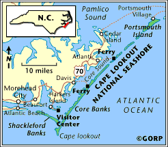 The computer was found on the Shackleford Banks at 34º 41.314´N by 76º 39.922´W. near the southern tip of North Carolina's Outer Banks.